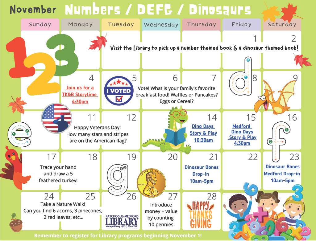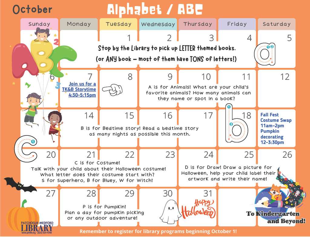 Preparar a su hijo para el éxito escolar puede ser abrumador, pero la Biblioteca Patchogue-Medford está aquí para ayudar con nuestra nueva serie de preparación para el kindergarten llamada, ¡Hacia kindergarten y más allá! ¡Regístrese hoy para un año escolar lleno de horas de cuentos, programas de pre-K y actividades para llevar a casa cuidadosamente diseñadas para preparar a su futuro hijo de kindergarten (¡y a usted!) para su primer día.